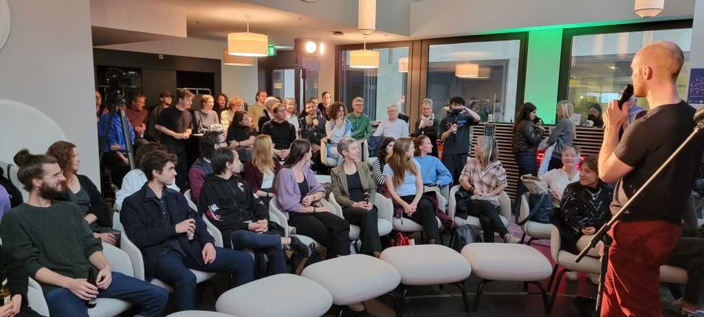 Andrea Schweizer, die Rektorin der Pädagogischen Hochschule Zürich würdigte die Beiträge und überreichte die Preise. Lukas Becker moderierte den Abend. Das Publikum wurde vom Barteam mit Getränken versorgt.